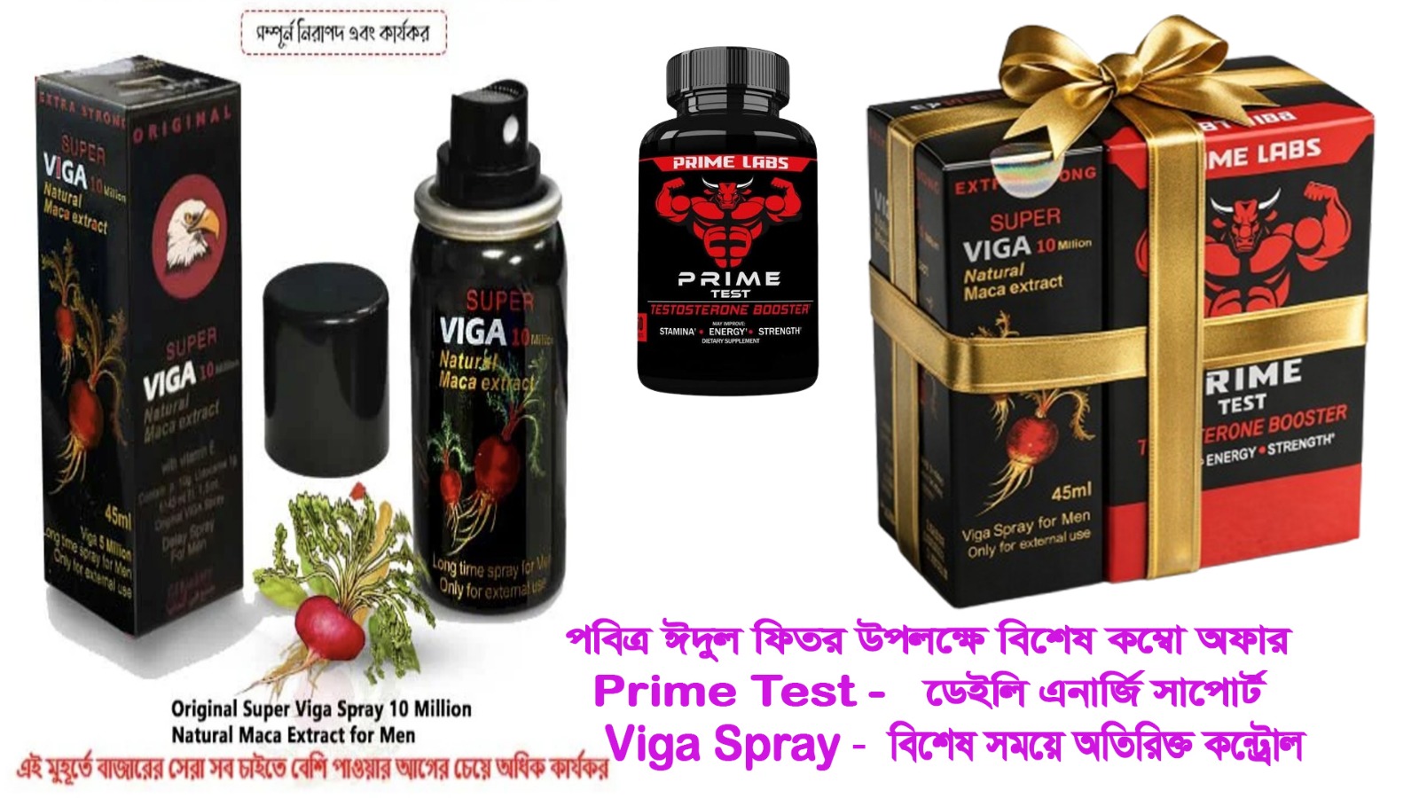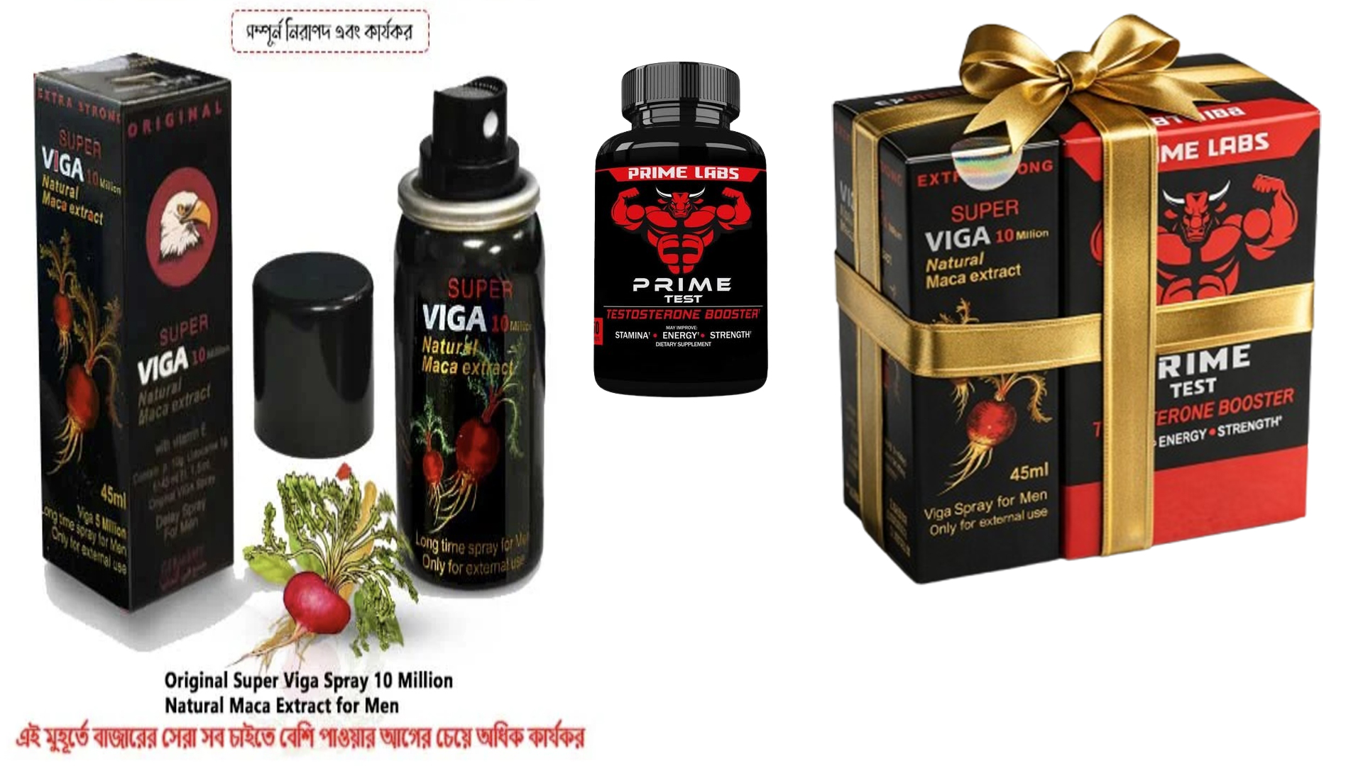 ✔️ Prime Test – ১ বক্স (৯০ ক্যাপসুল) ✔️ Viga 10 Million Spray – ১ বোতল